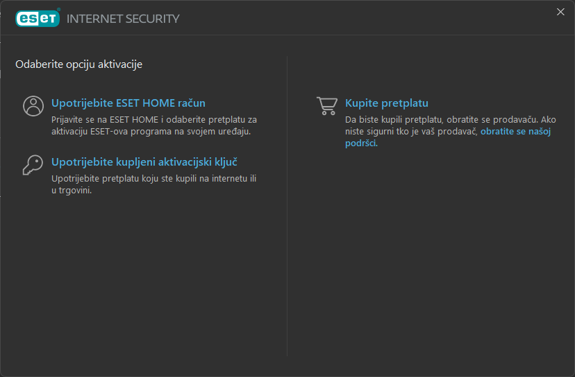 Postupak pretpostavlja da imate račun na portalu ESET Home.