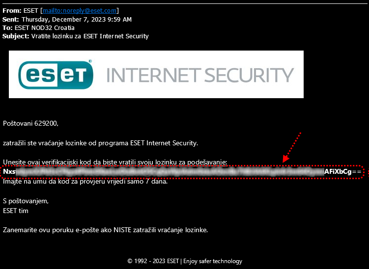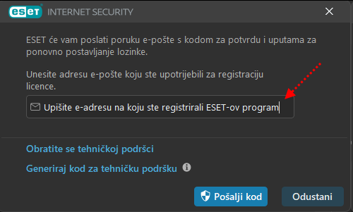 Mail, naravno, morate poslati s iste e-adrese na koju glasi i licenca za ESET-ov program.