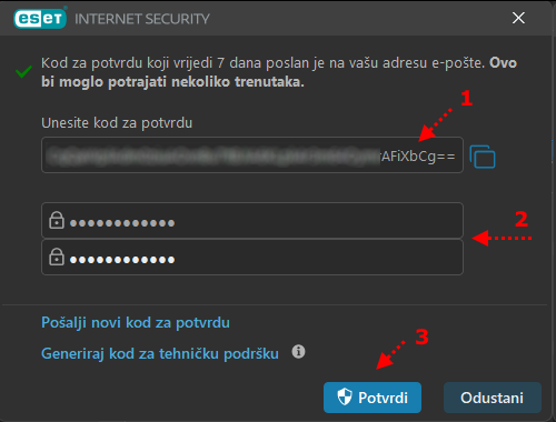 Kôd iz e-maila [1] zalijepite u odgovarajuće polje u programu,