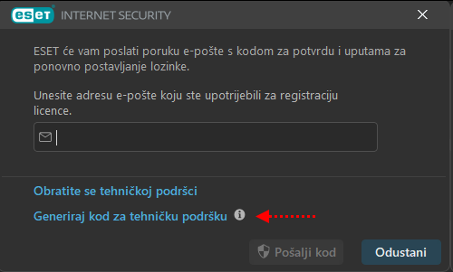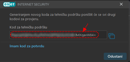 U sljedećem prozoru kliknite na “Generiraj kod za tehničku podršku”: