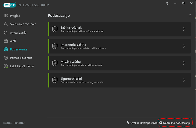 Otvorite ESET-ov program i pokrenite Napredno podešavanje